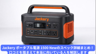 大容量(1000Wh~1999Wh) Jackery ポータブル電源 1500 Newのスペック詳細まとめ!口コミを踏まえて本当に向いている人を解説します この記事では、Jackery ポータブル電源 1500 Newのスペック詳細や口コミをもとに、本当に自分に合ったモデルなのかを分かりやすく解説します。結論、1,536Whの大容量と2,000Wの高出力を備えたJackery ポータブル電源 1500 Newは、防災・キャンプ・車中泊まで幅広く活躍し、「電力が足りなくて困る不安」をしっかり解消できる一台です。 2026.02.02 大容量(1000Wh~1999Wh)